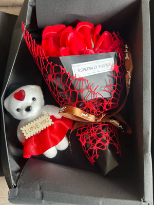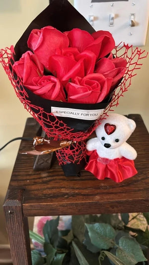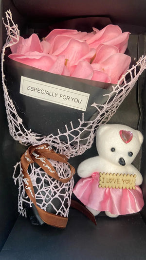 This rose soap bouquet and bear combo creates instant emotional impact, making celebrations feel meaningful without extra effort or fuss.
