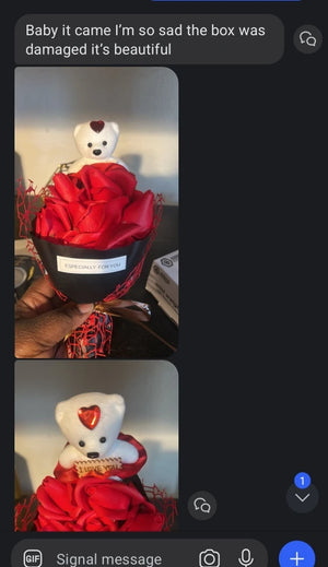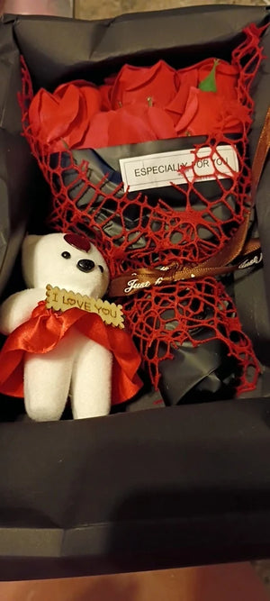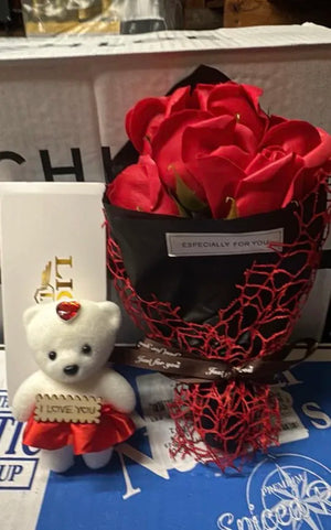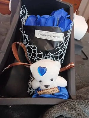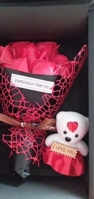 Keep a polished, thoughtful present on hand for anniversaries and birthdays. This rose soap bouquet and little bear arrive in a gift box so you can show care without scrambling for a store trip or gift wrap.